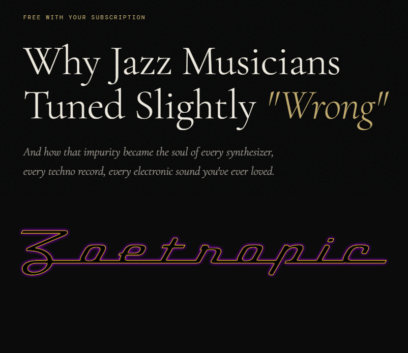 The music you love has a secret history. Why jazz musicians tuned slightly "wrong" — and how that impurity became the soul of techno, electronic, and everything in between. Free essay, no paywall. Subscribe and it's yours.